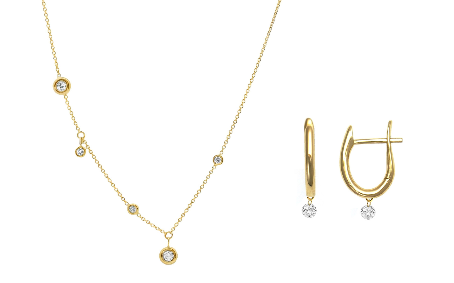 Besonders hervor sticht ein Set aus Roségold mit braunen Diamanten, das zeitlose Eleganz und modernen Chic verbindet. Ein weiteres Highlight: frei schwebend wirkende Diamanten. Feinste, naturgewachsene Steine werden durch ein spezielles Bohrverfahren kunstvoll ins Design integriert – ohne klassische Fassung. Damit entstehen Schmuckstücke, die Leichtigkeit und Raffinesse ausstrahlen.
