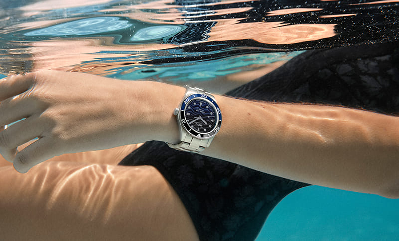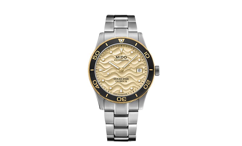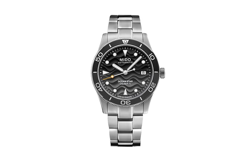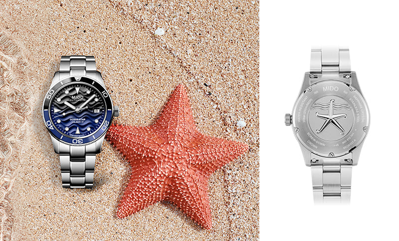 80 und doch frischer Wind: Erstmals erscheint die „Ocean Star“ von Mido in einem Gehäuse von 39 Millimetern Durchmesser. Für diese Premiere, die nicht von ungefähr mit dem 80. Jubiläum der Kollektion zusammenfällt, haben die Designer die Neuheit zudem mit einem Zifferblatt ausgestattet, das zweierlei Gestaltungselemente aufweist: ein besonderes Dekor sowie einen Farbverlauf, der von Schwarz zu Blau changiert. Die Optik des Zifferblattes erinnert an die Struktur des Sandes auf dem Meeresboden, die von den Strömungen verursacht wird. Die Taucheruhr im Edelstahlgehäuse ist bis 20 bar wasserdicht und wird vom Mido Automatikkaliber 72 auf ETA-Basis mit einer Gangreserve von bis zu 72 Stunden angetrieben. Getragen wird sie am Edelstahlband.