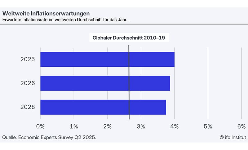 Wirtschaftsexpertinnen und -experten aus aller Welt erwarten einen leichten Anstieg der Inflationsraten in den kommenden Jahren. Das geht hervor aus dem Economic Experts Survey, einer vierteljährlichen Expertenumfrage des ifo Instituts.