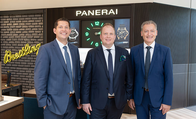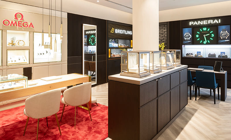Im Erdgeschoss liegt der Schwerpunkt auf Uhren. Neben bewährten Marken wie Omega, Glashütte Original, Breitling und Chopard sind mit Tudor und Panerai zwei prominente Neuzugänge vertreten, die erstmals bei Wenthe erhältlich sind. Die Präsentation im Shop-in-Shop-Prinzip macht die Markenwelten unmittelbar erlebbar.