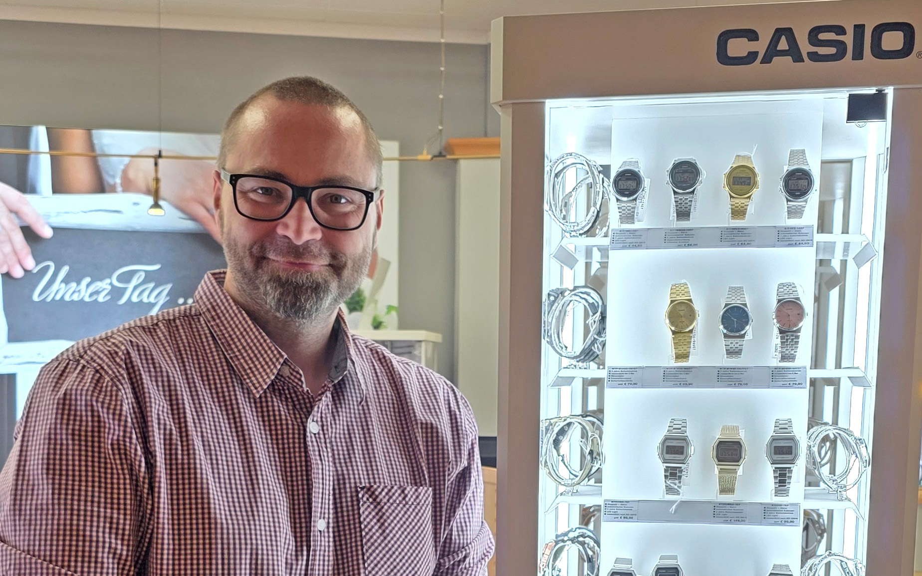 Die Kurzversion der Erfolgsbilanz lautet bei Scholze: „Eigentlich kann jeder Kunde, der reinkommt, mit einer Casio-Uhr rausgehen.“ Die Zielgruppenabdeckung dieses Lieferanten sei riesig. Dies fängt am Drehständer an, einem Selbstläufer. Dort ist die „Timeless Collection“ mit dem bekannten „Casio“ auf dem Zifferblatt zu finden, einschließlich Vintage-Modellen, die bereits ein riesig großes Publikum ansprechen würden.